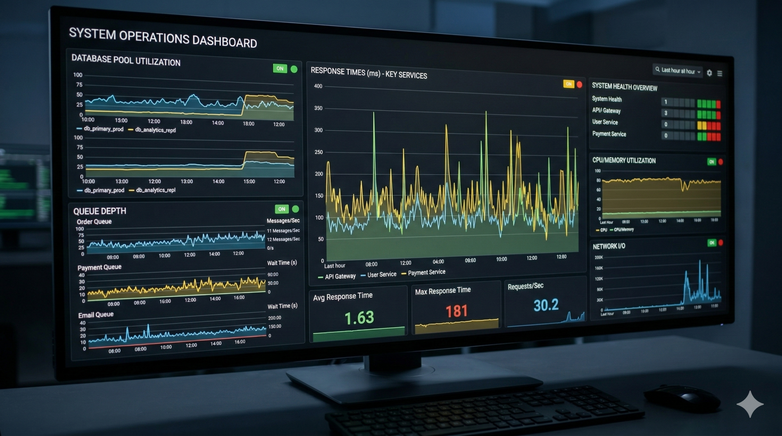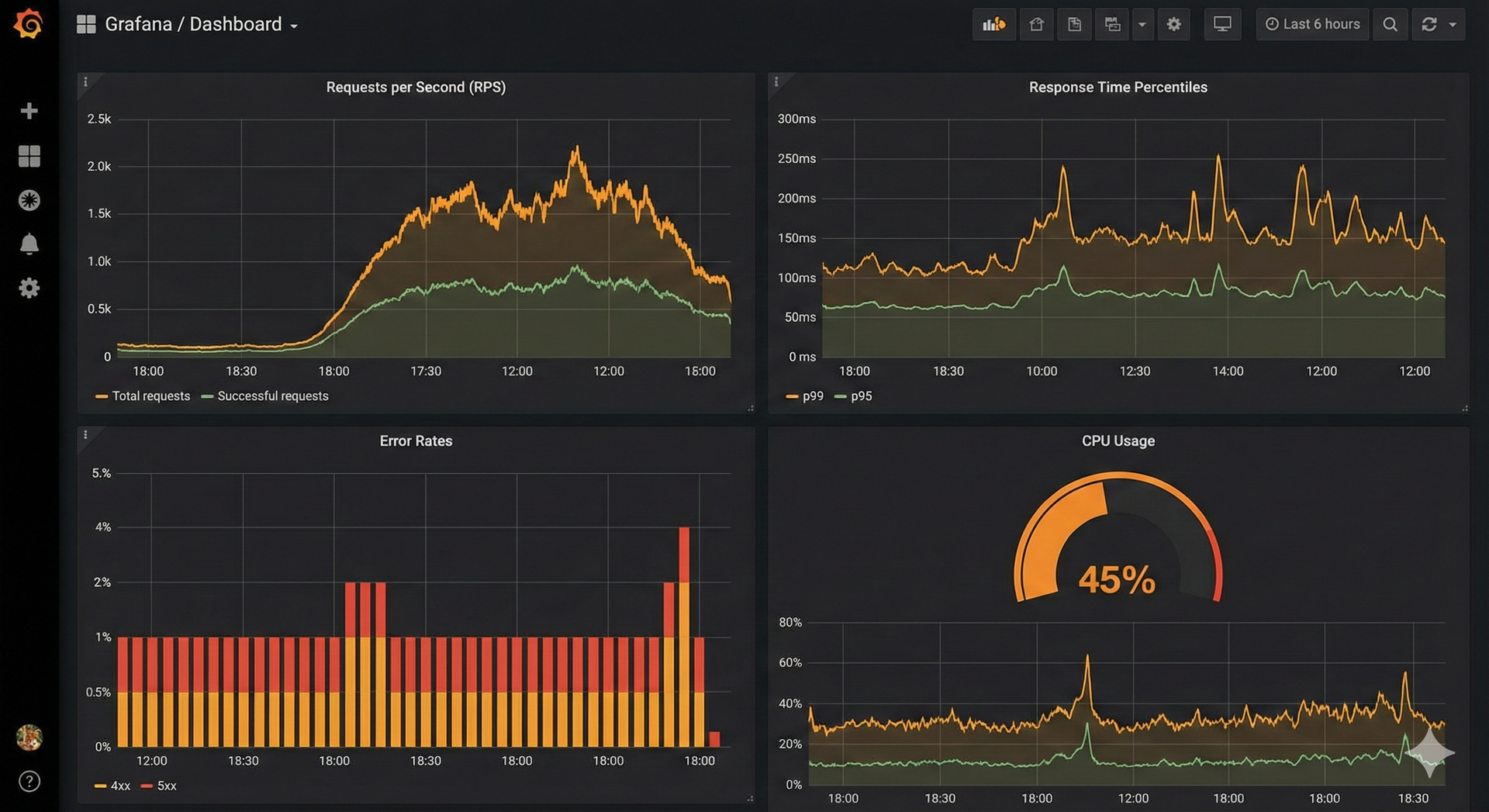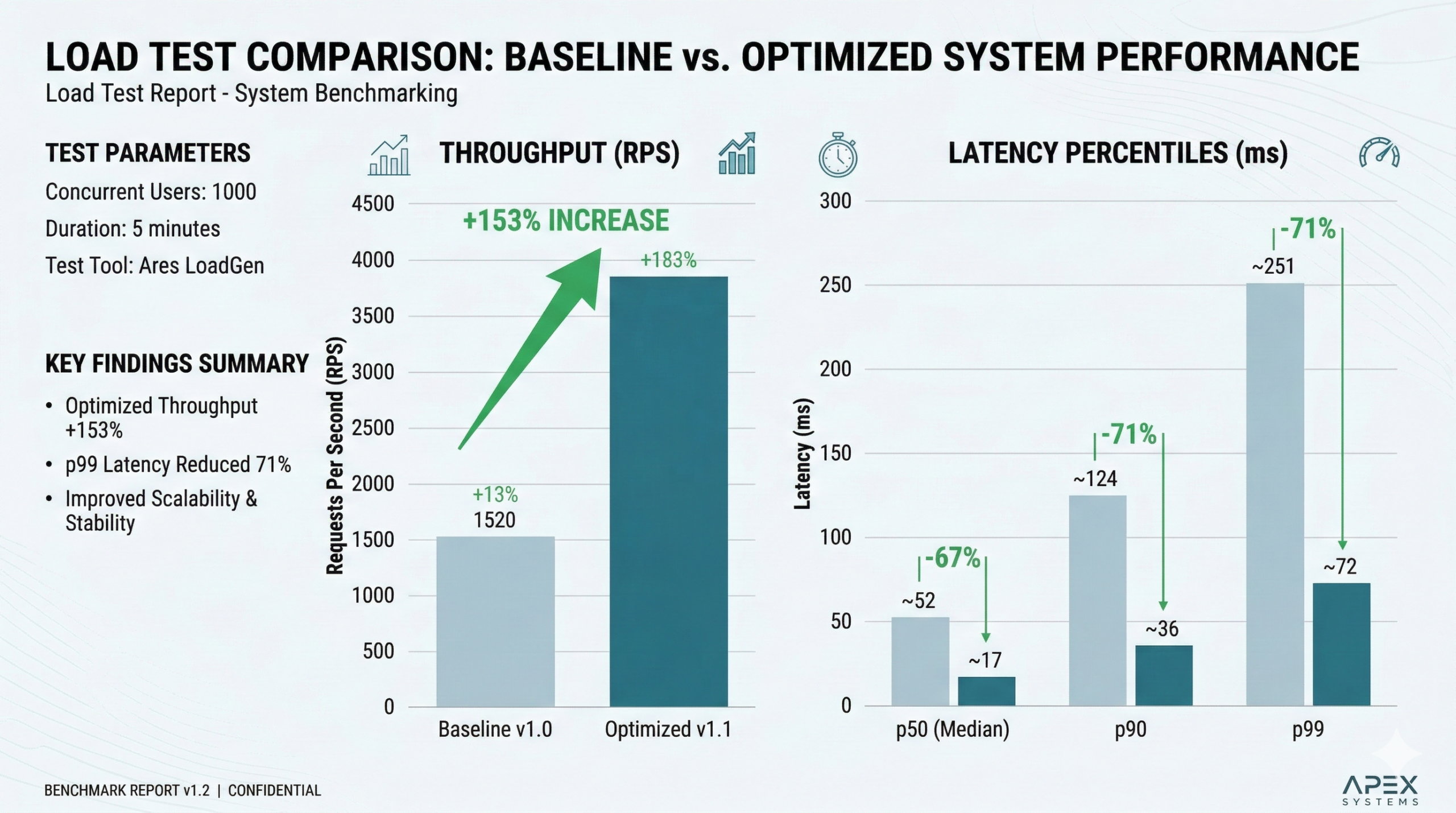 - Identified database connection pooling as primary bottleneck at 1,200+ VUs