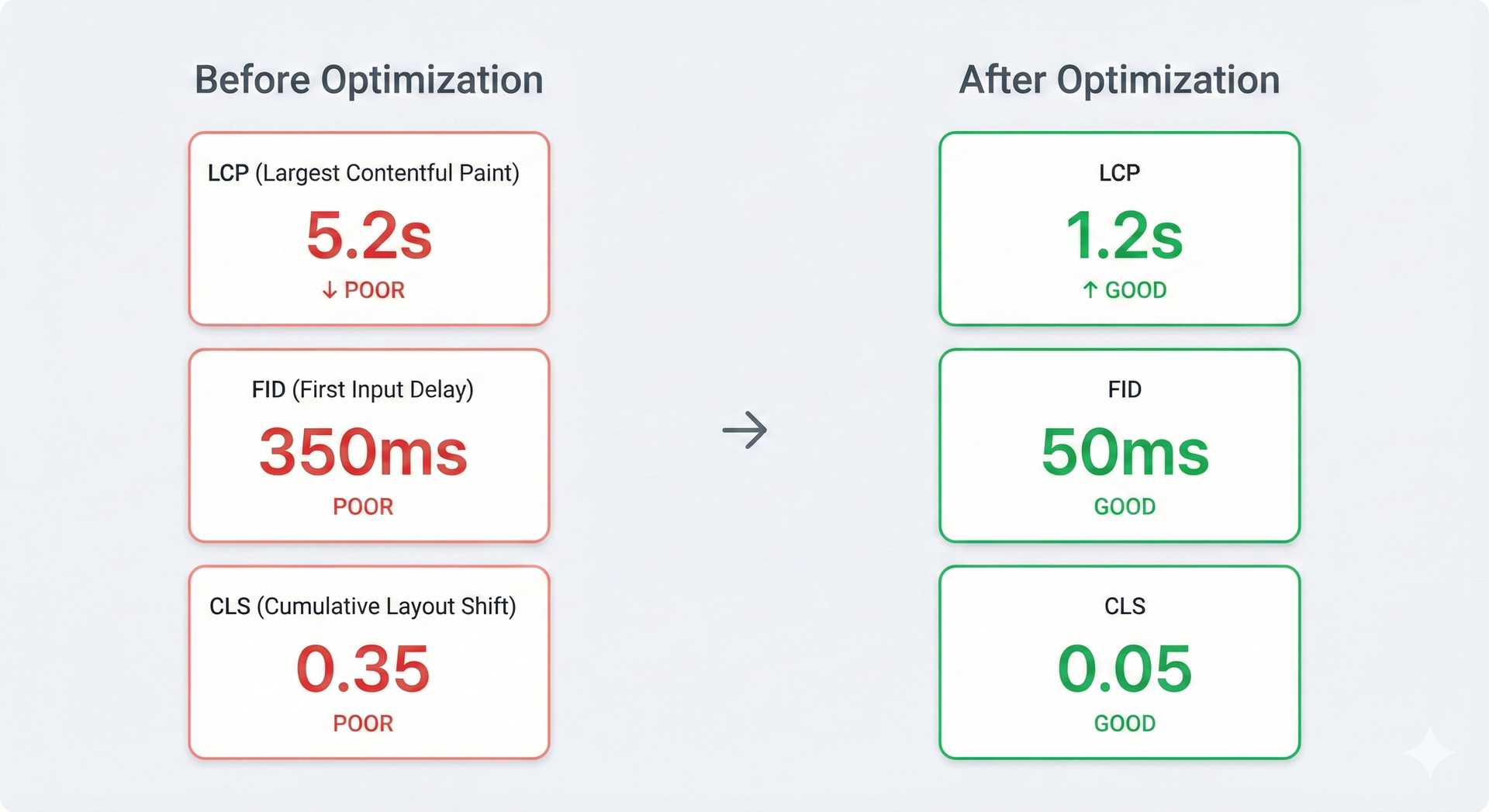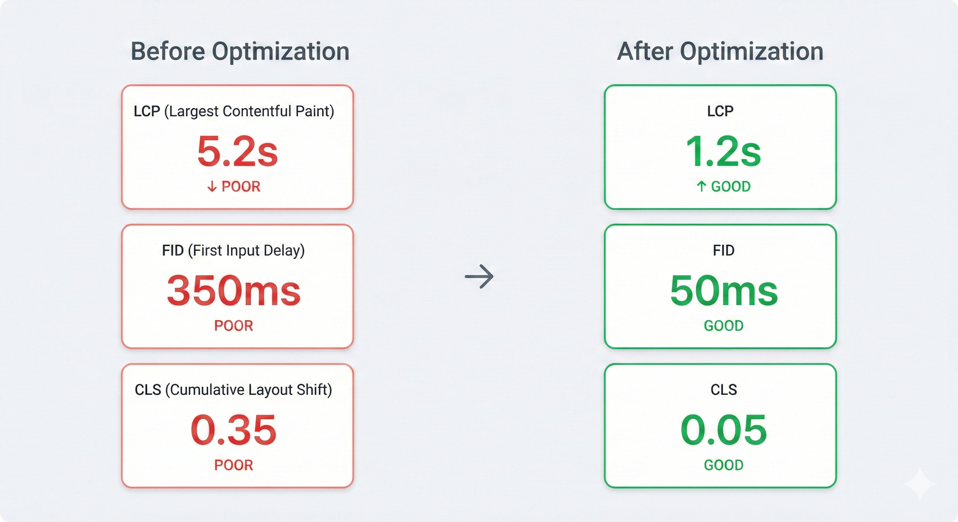• LCP: 8.2s → 1.4s